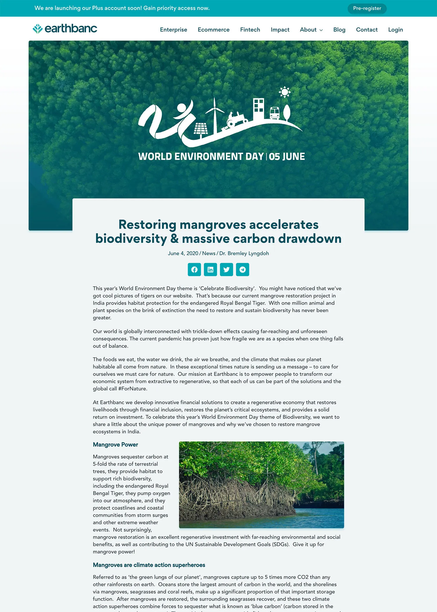 Earthbanc have progressed from an agile startup to win several rounds of VC funding and are now a successful global name in zero emission offset services.