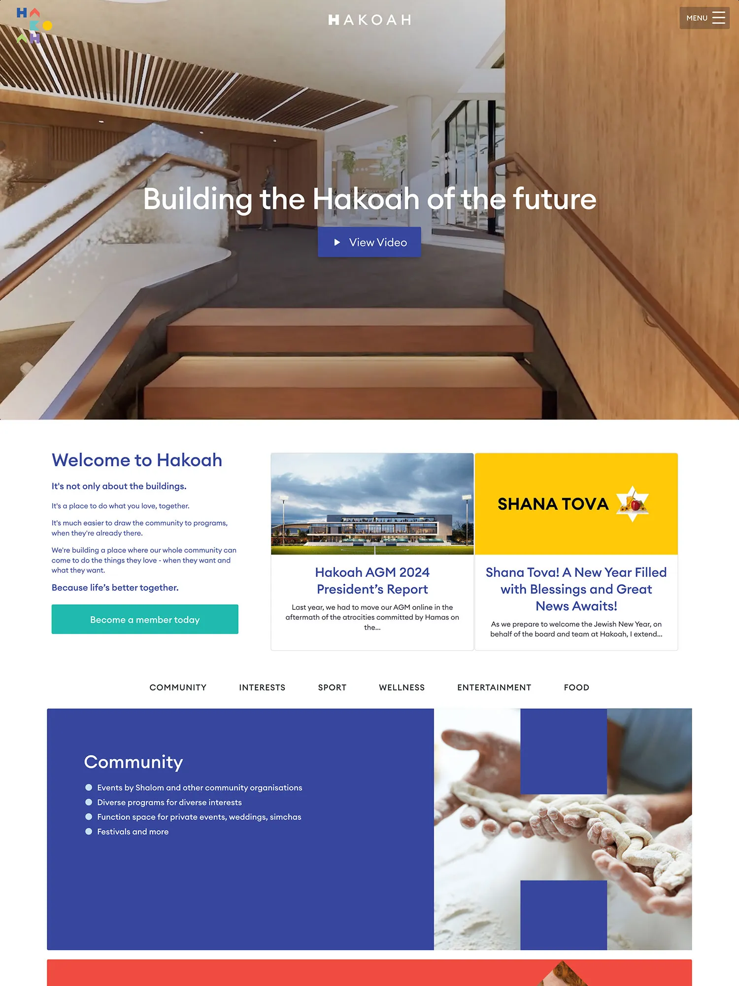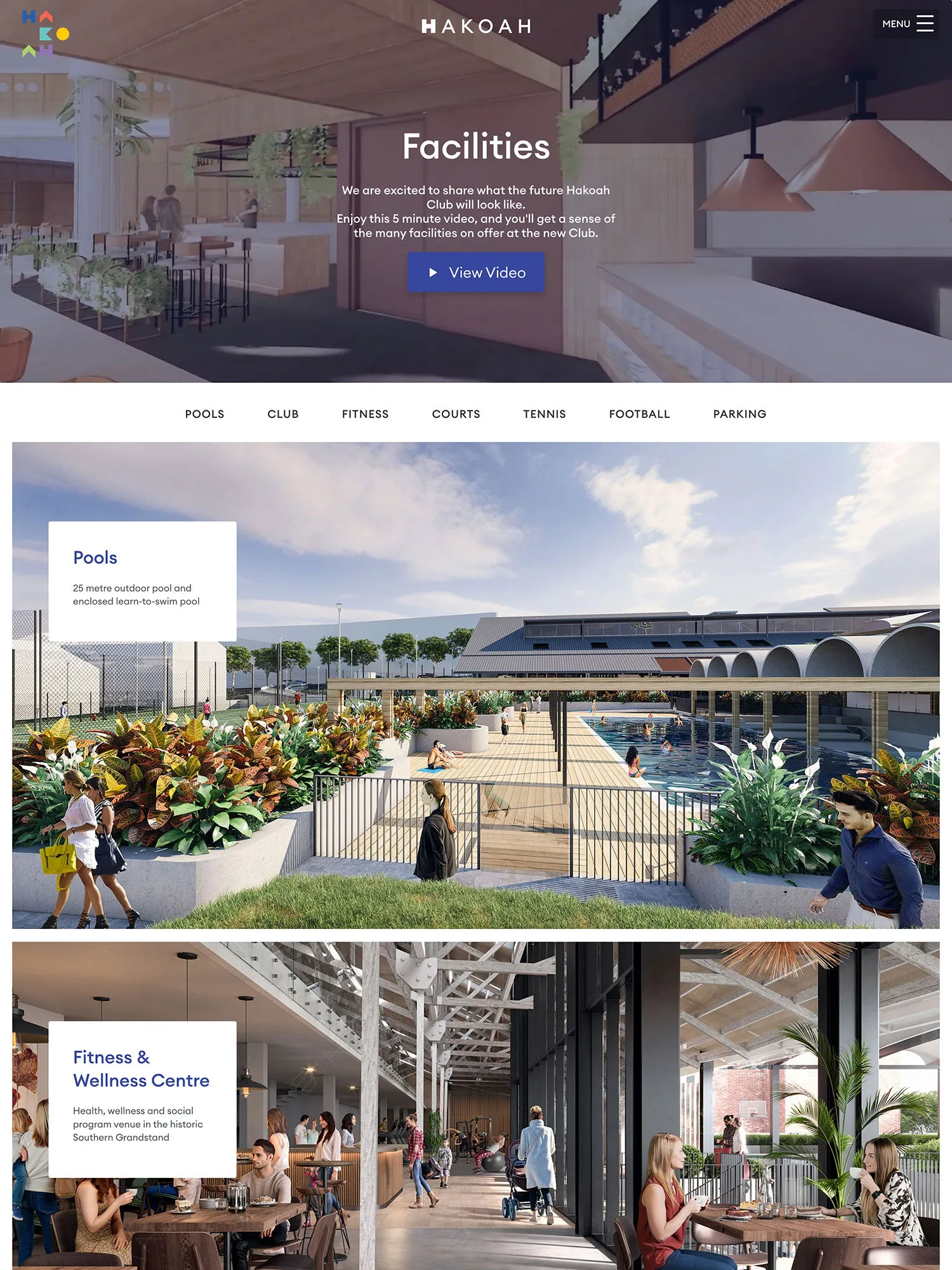 Hakoah is a multi-purpose community organisation located in White City, Sydney, dedicated to fostering connection, inclusivity, and cultural enrichment. The facility offers diverse programs and world-class amenities, including a heated 25-meter pool, multi-use courts, a football field, nine tennis courts, wellness studios, a gym, and vibrant meeting spaces for events, art, music, and more.