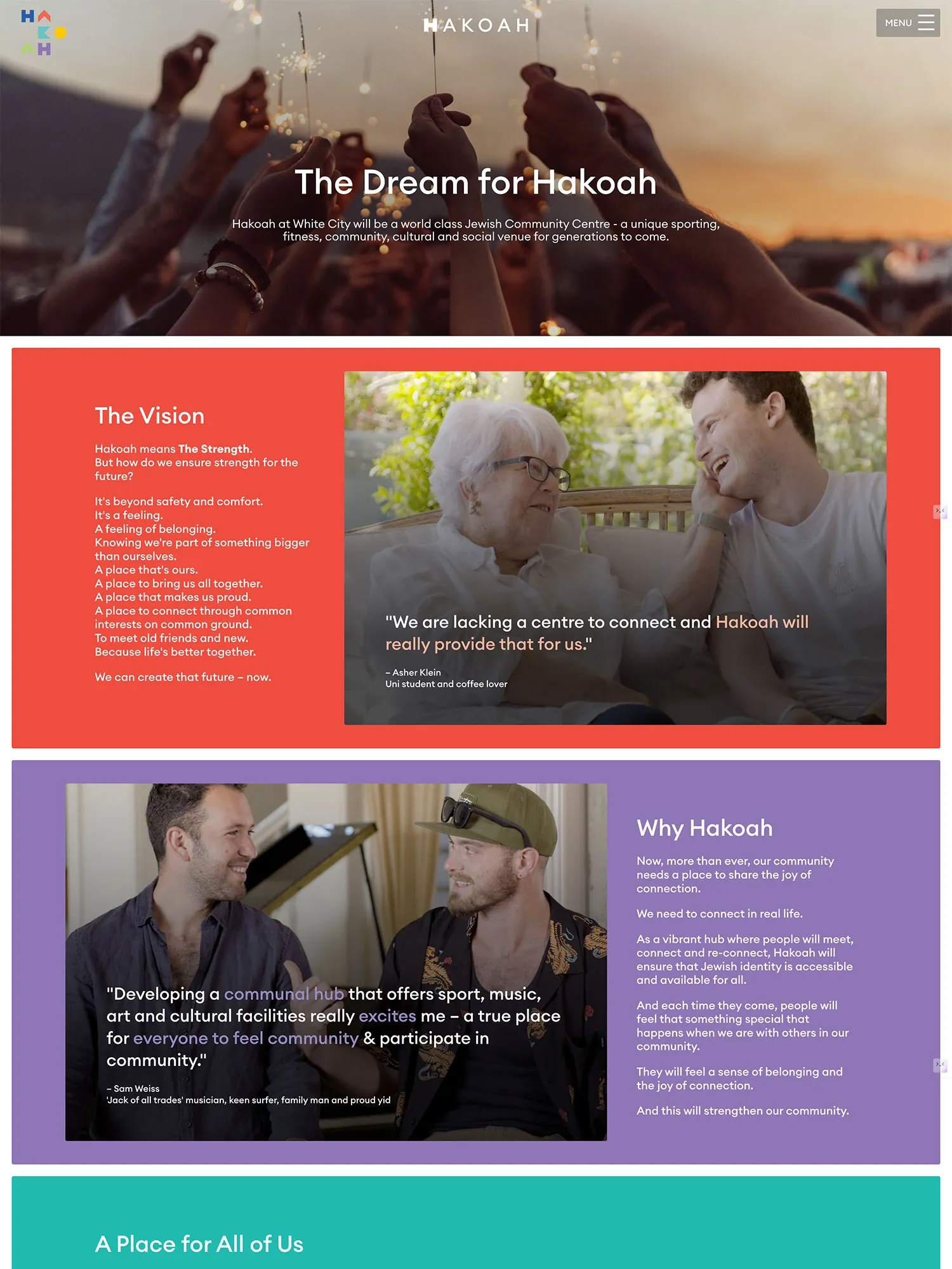 They brought us in to design and build a campaign website and generate excitement during their membership drive. As a much-loved venue for generations of people, we brought the stories of their loyal members front and centre in motion video and vibrant photography, capturing the memories and sense of belonging. Just as Hakoah hold a vision of bringing people together to do what they love, the website also serves as a meeting point for the community.