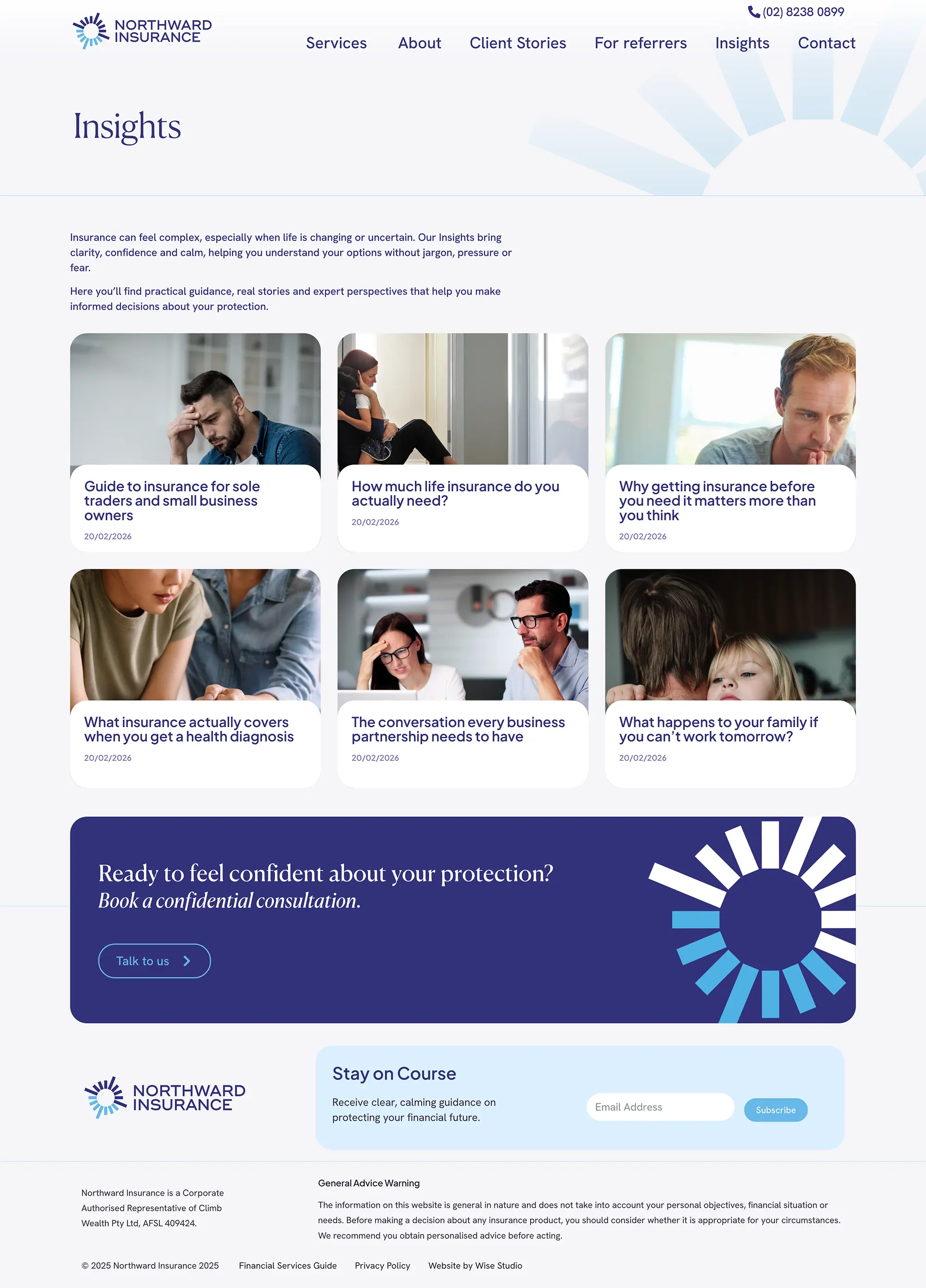 Wise Studio worked closely with financial advisory firm Financial Spectrum to launch their new insurance brand, Northward Insurance.