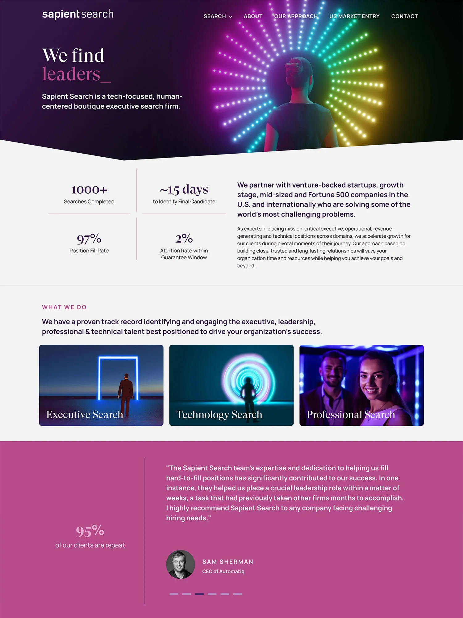 Sapient Search Group is a tech-focused, human-centered boutique executive search firm in NYC with a reputation for excellence and delivery. With expertise across executive, technical, and professional roles, they work with venture-backed startups, growth-stage companies, and Fortune 500 firms to place top-tier talent in industries such as software, healthcare, government, and financial services.